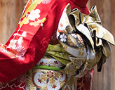 約有20~30套和服可供選擇。比花紋和服的袖子還要長,用袋帶打結後,顯得非常豪華、華麗。